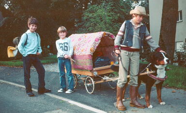 Als ich zehn Jahre alt war, beschlossen zwei meiner Freunde und ich mit Bäri, dem Berner Sennenhund meiner Familie, eine Wanderung durch das malerische Emmental zu machen. Schlau wie wir waren, spannten wir den grossen, kräftigen Hund als Zugpferdchen vor einen kleinen, selbstgezimmerten Wagen. Das war praktisch, wir brauchten nichts zu tragen, konnten leichtfüssig und fröhlich wandern und Bäri konnte ebenfalls seinen Teil zum Abenteuer beitragen.